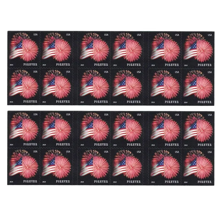 This stamp commemorates 200th anniversary of Star-Spangled Banner. The stamp’s image is from a photo of flag that flies over Fort McHenry National Monument and Historic Shrine. It was taken during fireworks display at annual Defenders’ Day celebration. During the War of 1812, Mary Pickersgill was commissioned to sew a flag “so large that the British will have no difficulty seeing it from a distance.” The flag was to fly over Baltimore’s Fort McHenry, which the British hoped to capture. Pickersgill was asked to make “one American ensign, 30x42 feet, first quality bunting.” A smaller flag of lighter materials was also ordered for use during bad weather. Over 400 yards of wool bunting was needed to construct the larger flag, which weighed about 50 pounds. Because of its size, the work was done on the floor of a nearby brewery after the business had closed for the day. These Forever®stamps will always be equal in value to the current First-Class MailR one-ounce rate.